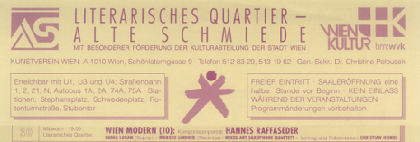 Im Juni 1975 eröffnete eine Lesung Friedrich Heers das Literaturprogramm der Alten Schmiede, Ilse Aichinger las am Tag danach, es folgten binnen fünfzig Jahren Lesungen von weit über 6.000 Autorinnen und Autoren.