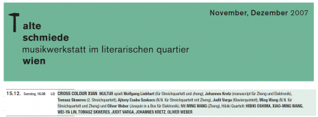 15.12.2007: Cross Colour Xian: IKULTUR spielt Wolfgang Liebhart, Johannes Kretz, Tomasz Skweres, Ajtony Csaba Szakacs, Judit Varga, Ming Wang, Oliver Weber