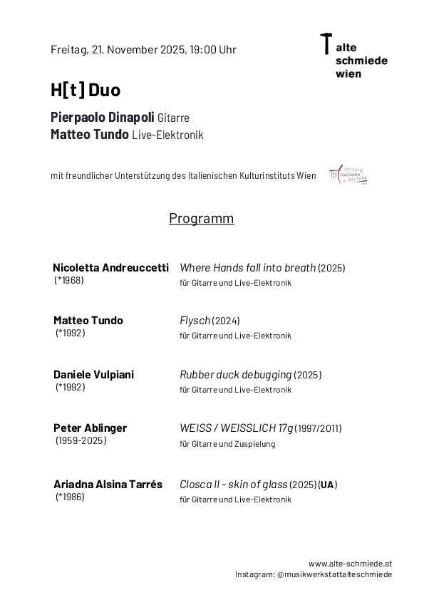 Peter Ablinger, Aquiles Lázaro, Matteo Tundo, Nicoletta Andreuccetti, Daniela Fantechi, Ariadna Alsina Tarrés, Daniele Vulpiani