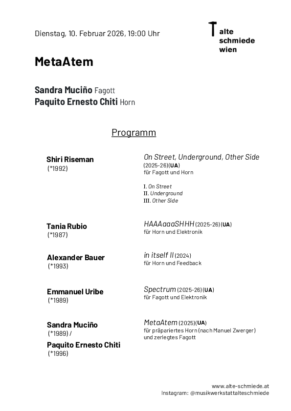 Ein Kompositionsprojekt über das Atmen: Komponist*innen wurden eingeladen, sich dem physiologischen Vorgang des Ein- und Ausatmens zu widmen – dem Atmen als Klang wie auch als Metapher für maschinelle oder technologische Systeme wie Pumpen oder Dampfmaschinen, als Metapher auch für Digitalität. In diesem Spannungsfeld siedelt klangliche Übersteigerung ebenso wie Fragiles, Geheimnisvolles.