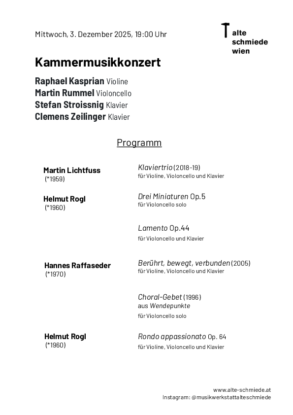 Präsentiert werden Werke dreier österreichischer Komponisten derselben Generation, die Merkmale traditioneller Konzertmusik mit avantgardistischen Elementen in Spannung setzen und in einen neuen, formal kühnen Kontext stellen. Kenntlich wird dabei die Ablehnung ästhetischer Dogmen sowie eine tabulose Darstellung unterschiedlichster Einflüsse aus Musikgeschichte und aktuellem Musikleben.
